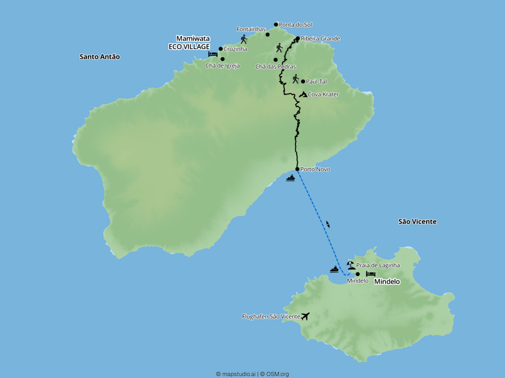 Entspannung, Entschleunigung und das Genießen mit allen Sinnen steht bei dieser Reise im Fokus. Das neu eröffnete ECO VILLAGE bietet Ihnen spektakuläre Ausblicke auf die Berglandschaft Santo Antãos, unvergessliche Sonnenuntergänge und kulinarische Genüsse mit Zutaten aus dem eigenen Anbau. Entdecken Sie mit einem lokalen Guide die Vielfalt dieser Insel und lernen ein wenig vom kapverdischen Leben kennen. Diese Woche ist auch mit anderen Inseln und Verlängerungstagen kombinierbar.