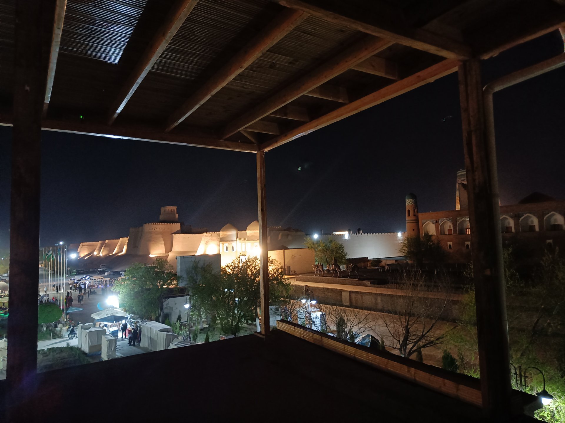 Am frühen Abend können wir die bezaubernde Atmosphäre Bucharas bei einem köstlichen Imbiss und einem gemütlichen Spaziergang um Labi Havuz kennenlernen, eindrucksvolles Gebäudeensemble an einem der größten Wasserbecken der Stadt, an welchem jahrhundertealte Maulbeerbäume an heißen Tagen kühlenden Schatten spenden. Um diesen Komplex aus Wasserbecken und Park herum sind drei Bauwerke angeordnet und auf diesen ausgerichtet. Im Westen liegt die 1620 errichtete ehemalige Pilgerherberge Nodir-Devonbegi Chanaqa, im Osten die 1623 erbaute Koranschule Nodir-Devonbegi Medrese. Im Norden jenseits der Straße, liegt die bereits 1569 errichtete Ko`kaldosh-Medrese.