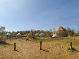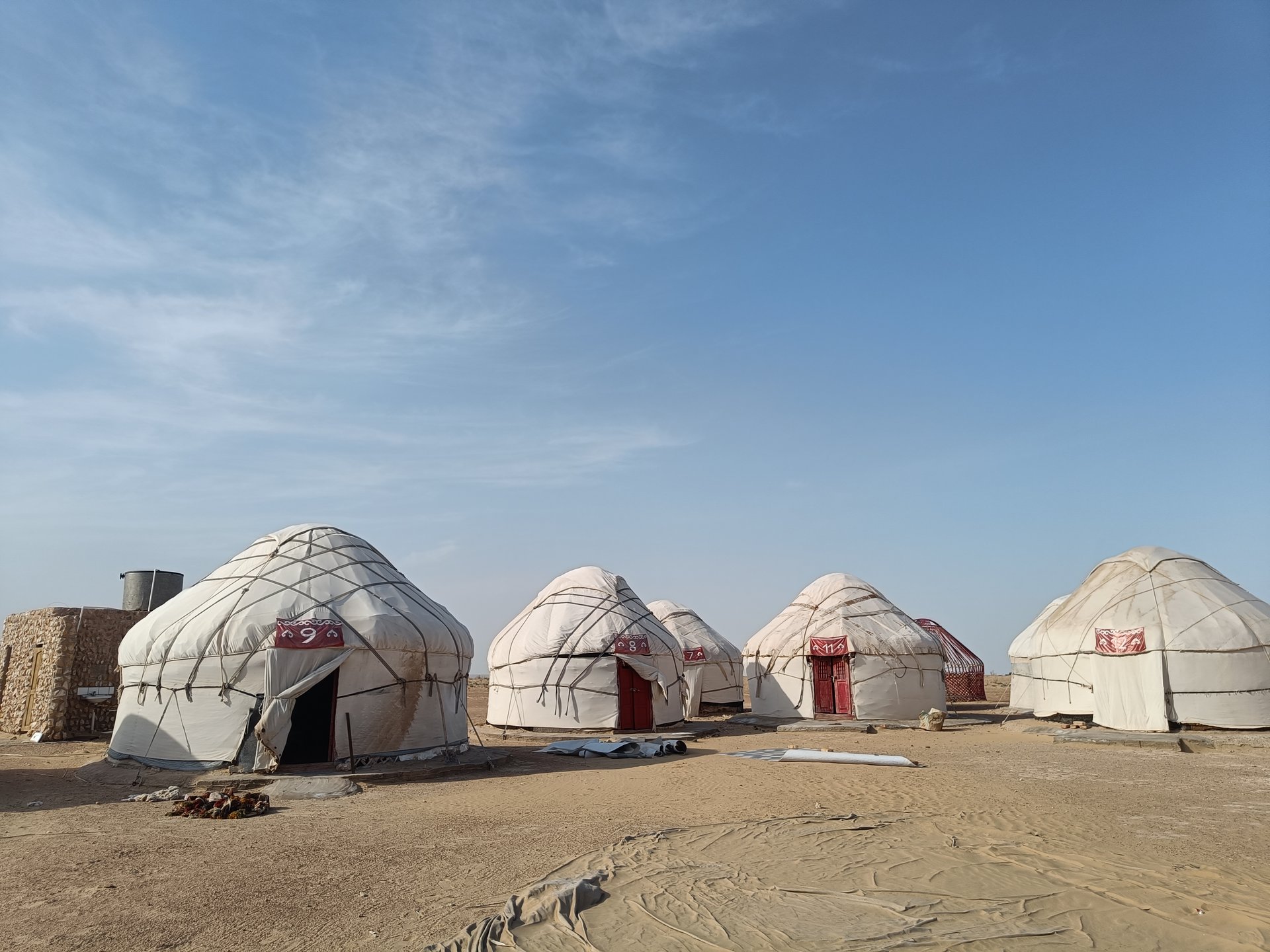 Am Nachmittag geht es weiter zum Aydarkul-See, einem riesigen, von Menschenhand geschaffenen See in der Kyzylkum-Wüste, wo wir eine stimmungsvolle Nacht in einem traditionellen Jurtencamp verbringen werden.