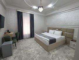 Das Mirzo Hotel liegt in Taschkent auf dem halben Weg zwischen Flughafen und Innenstadt. Es bietet sehr saubere, elegante, mit Polstermöbeln ausgestattete Zimmer und ein sehr gutes Frühstück, auch vegetarisch und vegan sowie halal.