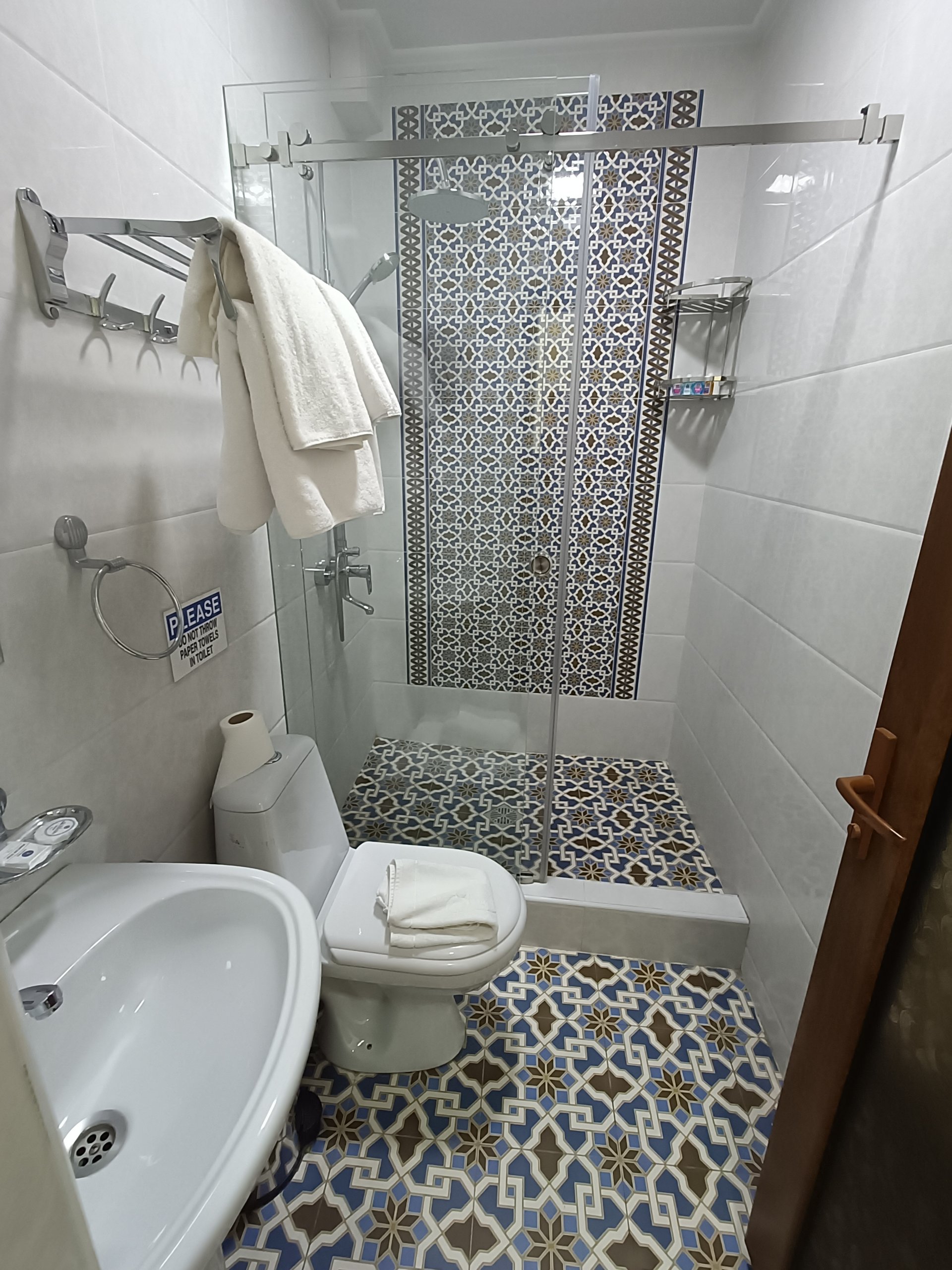 Zimmer: eigenes Bad mit Badewanne/WC, Klimaanlage, Kühlschrank, Kaffee- und Teezubehör, TV, Schreibtisch