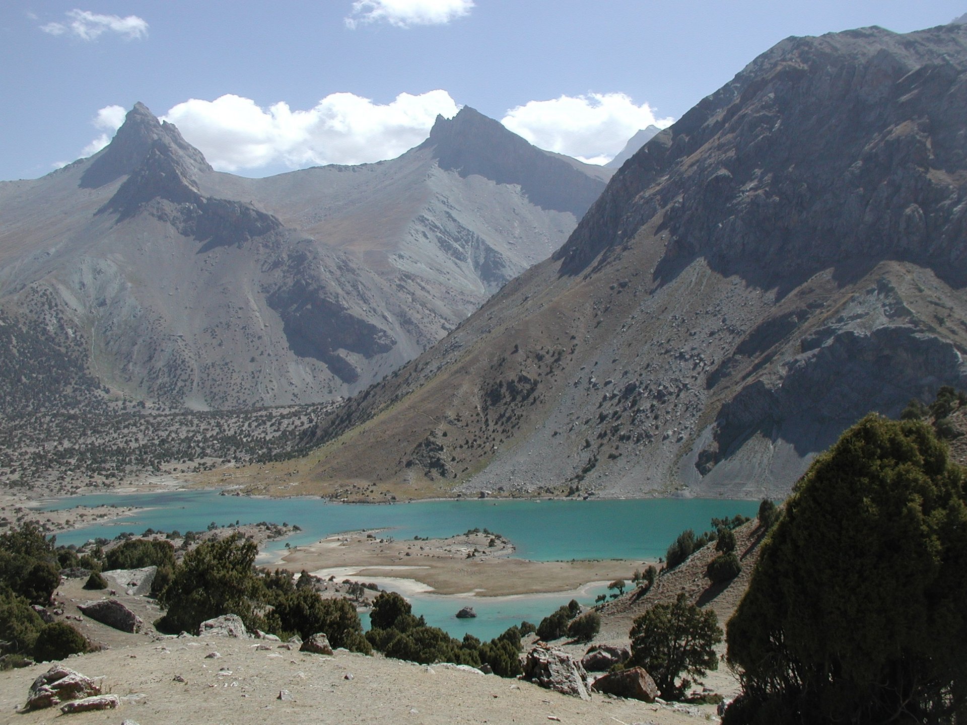 Nach dem Frühstück im Hotel fahren Sie zum fantastischen Hochgebirgssee Iskandarkul, der nach Alexander dem Großen benannt wurde und auf 2.255 m ü.d.M liegt. Dieses fabelhafte Gebiet ist einer der schönsten Orte Zentralasiens. Die Piste windet sich durch einen Canyon mit stark erodierten, bunten Lehmhängen immer weiter nach oben und und bietet erstaunliche Panoramaaussichten. Umgeben von einer schroffen Berg- und Hügellandschaft leuchtet der türkisblaue See geradezu vor dem Hintergrund der grünen Sträucher.