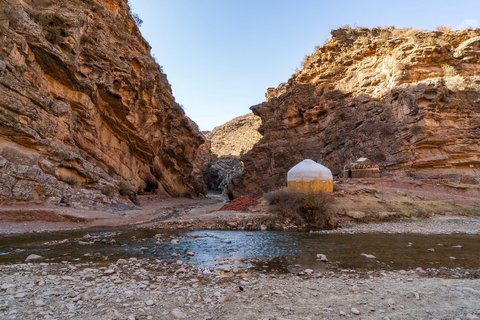 Morgens Fahrt zur Derbent Schlucht. Derbent liegt in einem Flusstal und ist an vier Seiten von Bergen umgeben, deren Sand in verschiedenen Farben gefärbt ist: Weiß, Gelb, Rot. Hier können Sie bei einer Wanderung nicht nur einmalige Landschaften genießen, sondern auch nomadisches Leben näher kennenlernen.