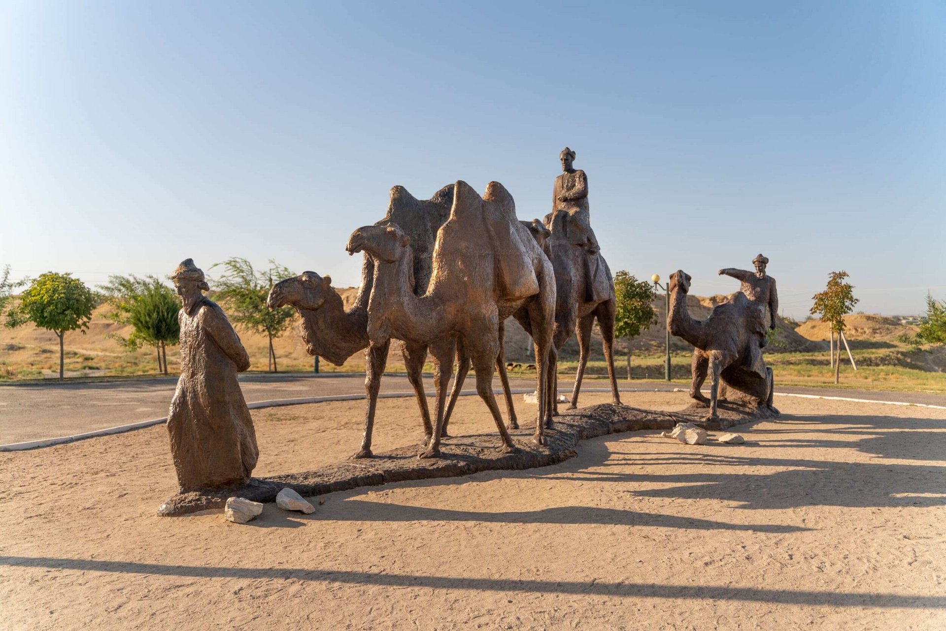 - Afrasiab: Aus der Zeit vor der Zerstörung durch Dschingis Khan sind keine kompletten Gebäude erhalten. Die Ausgrabungen förderten aber eine Stadtanlage basierend auf rechtwinkligen Straßen und entsprechenden Wohnblocks zutage. Auch Gebäudereste von Werkstätten, Moscheen und einer Zitadelle wurden entdeckt. Zu den gefundenen Kunstgegenständen gehören Terrakottafiguren, rot glasierte Keramiken und Wandmalereien, die sich heute im Museum von Samarkand befinden.