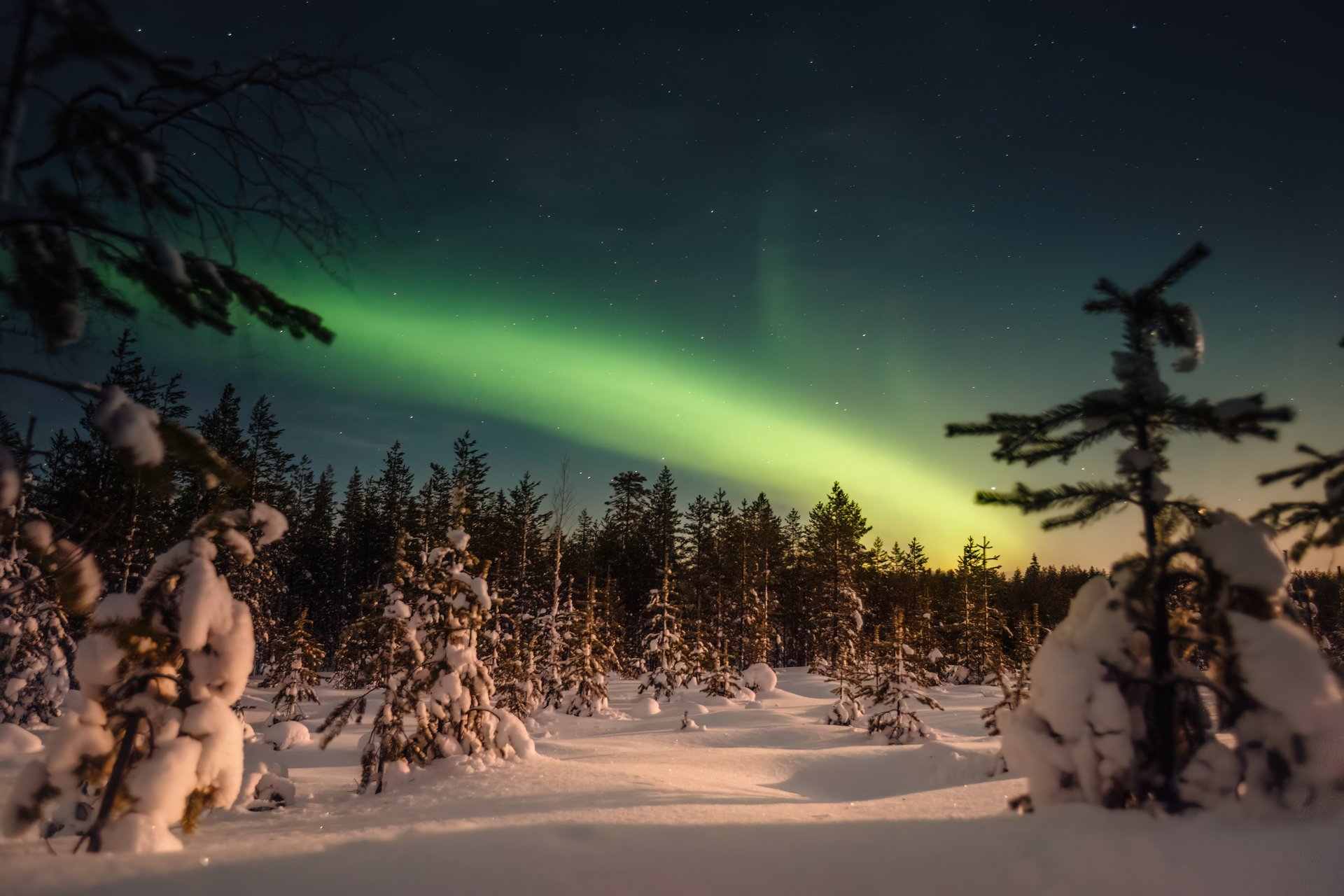Nach dem Frühstück Transfer zur Busstation und Fahrt durch die verschneiten Weiten Lapplands in Richtung Kakslauttanen. Von dort Weiterfahrt zum Wilderness Hotel Muotka bei Saariselkä. Das Hotel liegt in unmittelbarer Nähe des Urho-Kekkonen-Nationalparks und bietet Ruhe, Natur und authentisches Lappland-Feeling.