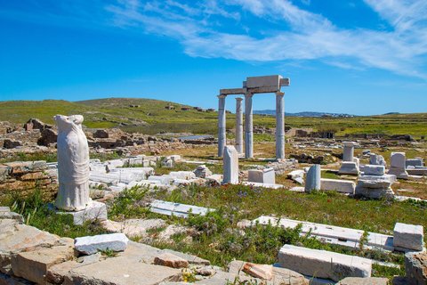 Heute unternehmen Sie einen Bootsausflug zu den Inseln Mykonos und den beeindruckenden antiken Stätten auf Delos - ein Ort voller Geschichte und Mythologie.