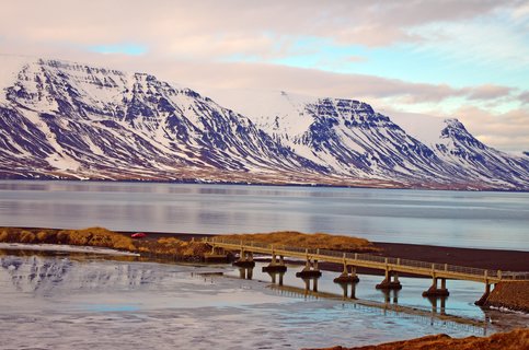 Die Insel Hrísey liegt weitgehend flach mitten im schönen Fjord Eyjafjörður. Vom Anleger Árskógssandur setzen wir über und erkunden den Südteil der Insel auf einer kleinen Wanderung. Die schneebedeckte Kulisse der umliegenden Berge ist überwältigend. An kaum einem anderen Ort hat man einen solchen Rundumblick auf die Berge Nord-Islands. Wir lassen die Weite auf uns wirken und begeben uns nach unserer Rückkehr abends erneut auf Suche nach Polarlichtern. ... ÜN Nord-Island/Tröllaskagi