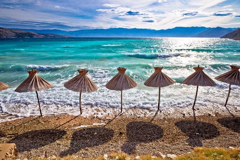 Auf Krk können Sie das Städtchen Krk selbst durchbummeln, sich einen schönen Strand suchen oder in der Nähe von Baka wandern, das für seine atemberaubenden Strände bekannt ist, oder die goldene Bucht von Punat mit ihrem ruhigen Wasser und ihrer üppigen Landschaft erkunden. Diese Wanderwege bieten atemberaubende Ausblicke auf die Küste, charmante Dörfer und friedliche Buchten.