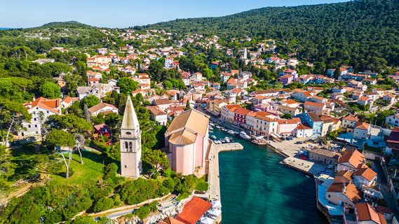Fahren Sie hinunter zum Hafen von Brestova und gehen Sie an Bord der Autofähre nach Porozina auf der Insel Cres. Nach Ihrer Ankunft in Porozina setzen Sie Ihre Reise in Richtung Süden fort und fahren durch malerische Landschaften, bis Sie die charmante Stadt Mali Losinj erreichen, die für ihre üppige Vegetation und ihr klares Wasser bekannt ist.