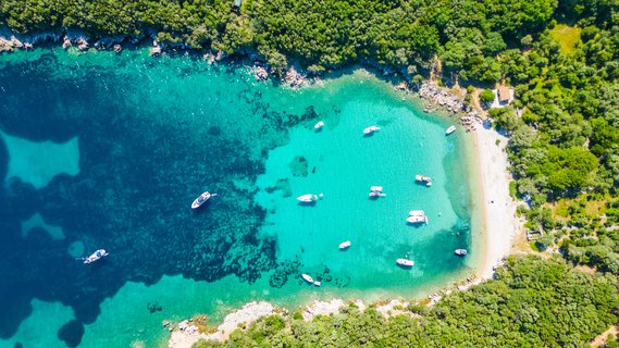 Fahren Sie zur Insel Cres, die für ihre zerklüfteten Landschaften und unberührte Natur bekannt ist.