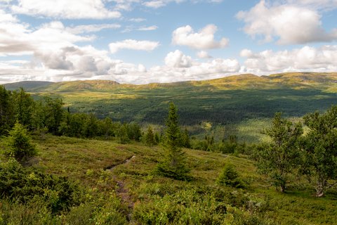 Skåbu ist eine der höchstgelegenen dauerhaft bewohnten Siedlungen Nordeuropas und der ideale Ausgangspunkt für Naturerlebnisse. Gemeinsam mit einem lokalen Guide erkunden Sie die Umgebung bei einer Wanderung durch offene Hochlandlandschaften. Der Weg führt über sanfte Hügel, vorbei an Bächen und blühenden Wiesen, und bietet einen weiten Blick bis zum Horizont. Die Region ist Lebensraum für zahlreiche Tiere. Mit etwas Glück können Sie Rentiere oder Elche beobachten. Schon seit Jahrtausenden sind Elche in dieser Region heimisch und durchqueren sie bevorzugt im Frühjahr und im Herbst. Ein Picknick in der Natur rundet das ursprüngliche Erlebnis dieses Tages ab.