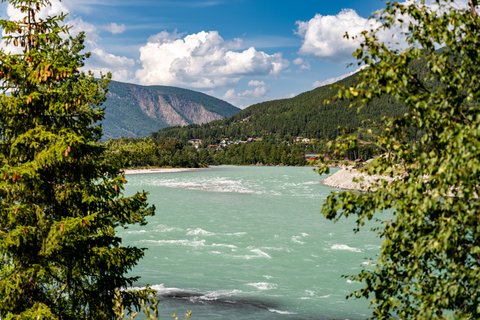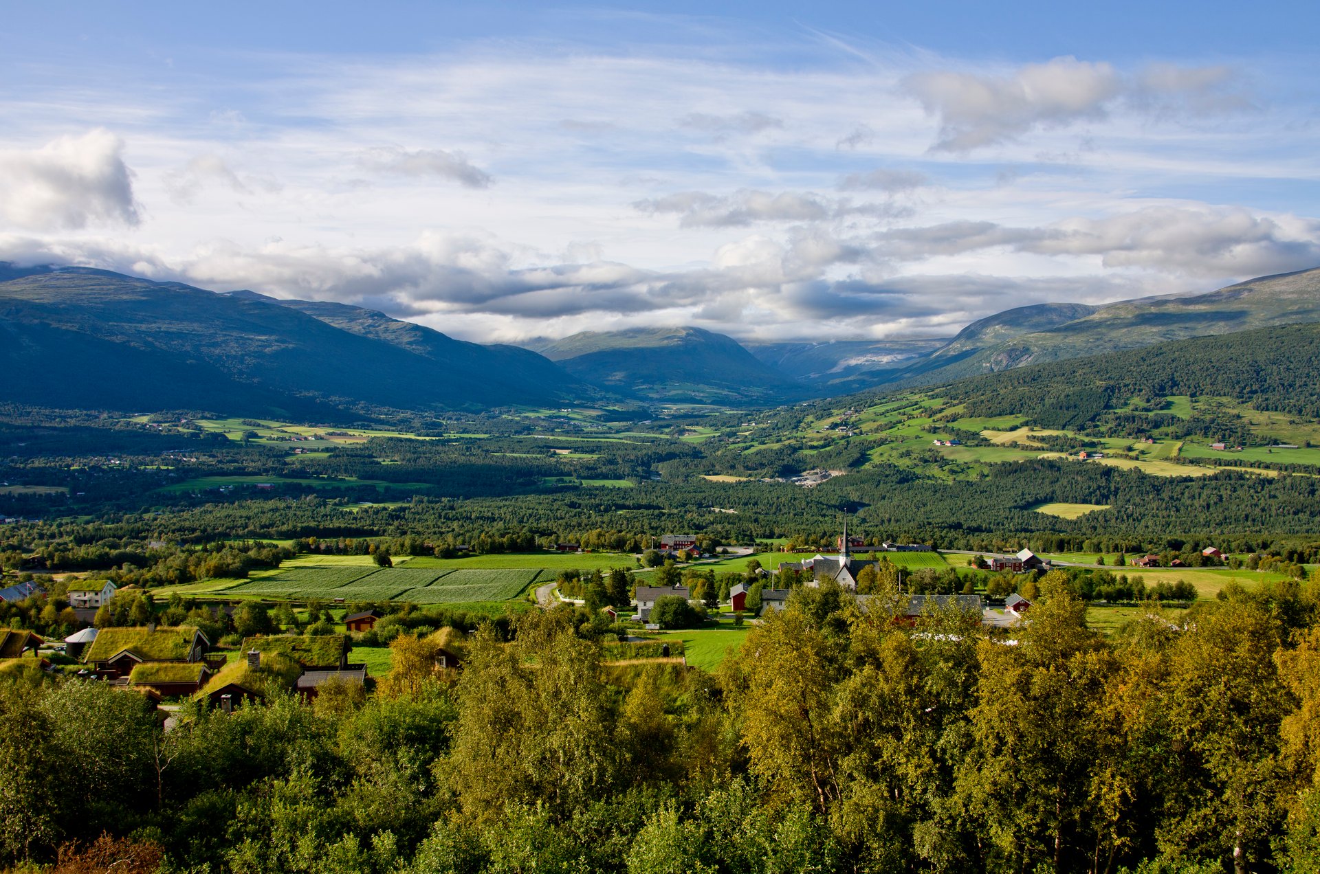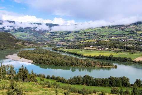 Ihre Bahnreise Richtung Norden beginnt am Morgen. Die Strecke führt durch das fruchtbare Gudbrandsdalen Richtung Ringebu, vorbei an Flüssen, Wiesen und kleinen Ortschaften. In Vinstra steigen Sie um, bevor Sie schließlich das Bergdorf Skåbu erreichen. Der abgelegene Ort liegt auf einer Hochebene nahe des Jotunheimen-Gebiets und ist von weitläufiger Landschaft geprägt. Hier wird es ruhiger, klarer und ursprünglicher - ein bewusster Kontrast zur Hauptstadt. Am Abend breitet sich die Stille der Berge aus und lässt den Reisetag sanft ausklingen.