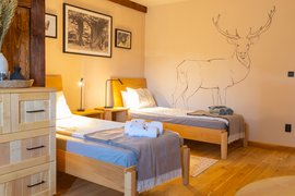 Zimmer: Mehrbett- und Doppelzimmer, zwei Badezimmer im Erdgeschoss, zusätzliche Kaminöfen in allen Zimmern