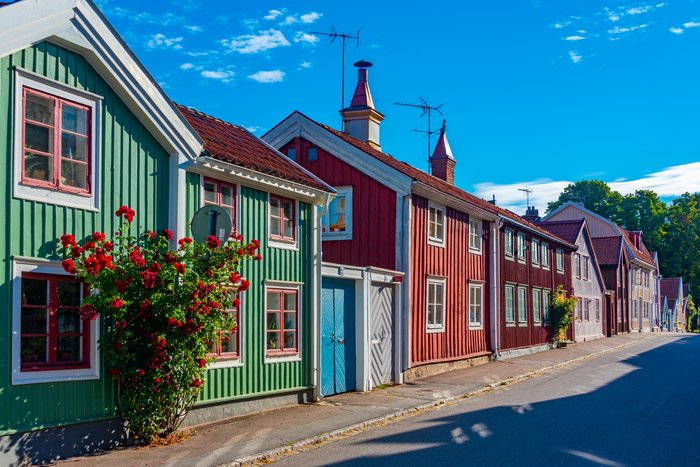 Die Pflastergassen der Altstadt Gamla Stan, wo sich früher das mittelalterliche Zentrum von Kalmar befand, sind gesäumt von gut erhaltenen, niedlichen Holzhäusern aus dem 18. und 19. Jahrhundert.