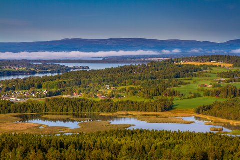 Gegen Mittag steigen Sie in Mora in die Inlandsbanan und beginnen die erste Etappe auf dieser traditionsreichen Bahnstrecke. Etwa fünf Stunden rollen Sie durch das stille Herz Schwedens: Wälder, Seen, Sümpfe und verstreute Dörfer begleiten die Fahrt, während das Tempo der Inlandsbanan Zeit lässt, die Landschaft bewusst wahrzunehmen. Mit jedem Kilometer wirkt der Norden ursprünglicher und weiter. Vielleicht lauschen Sie den Erzählungen der Zugbegleitung, lesen ein wenig oder genießen einfach die beruhigende Szenerie vor dem Fenster. Am späten Nachmittag erreichen Sie Östersund am Storsjön. beziehen Ihr zentral gelegenes Hotel und können noch einen ersten Rundgang durch die charmante Kleinstadt unternehmen - lebendig, überschaubar und eingerahmt von den Bergen Jämtlands.